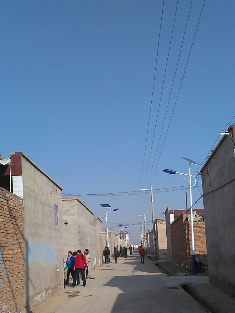 甘肅省蘭州市太陽能路燈工程,是我公司在甘肅眾多的一事一議路燈項目中的一項,項目采用單板6米高農村太陽能路燈,是我們蘭光照明在廣大農村地區安裝的較常用路燈,有著非常大的優勢,外形簡單,主桿結實耐用使用壽命長,光源采用LED小金豆,色溫穩定,可以使用50000小時,在農村地區是非常經濟實惠的。
