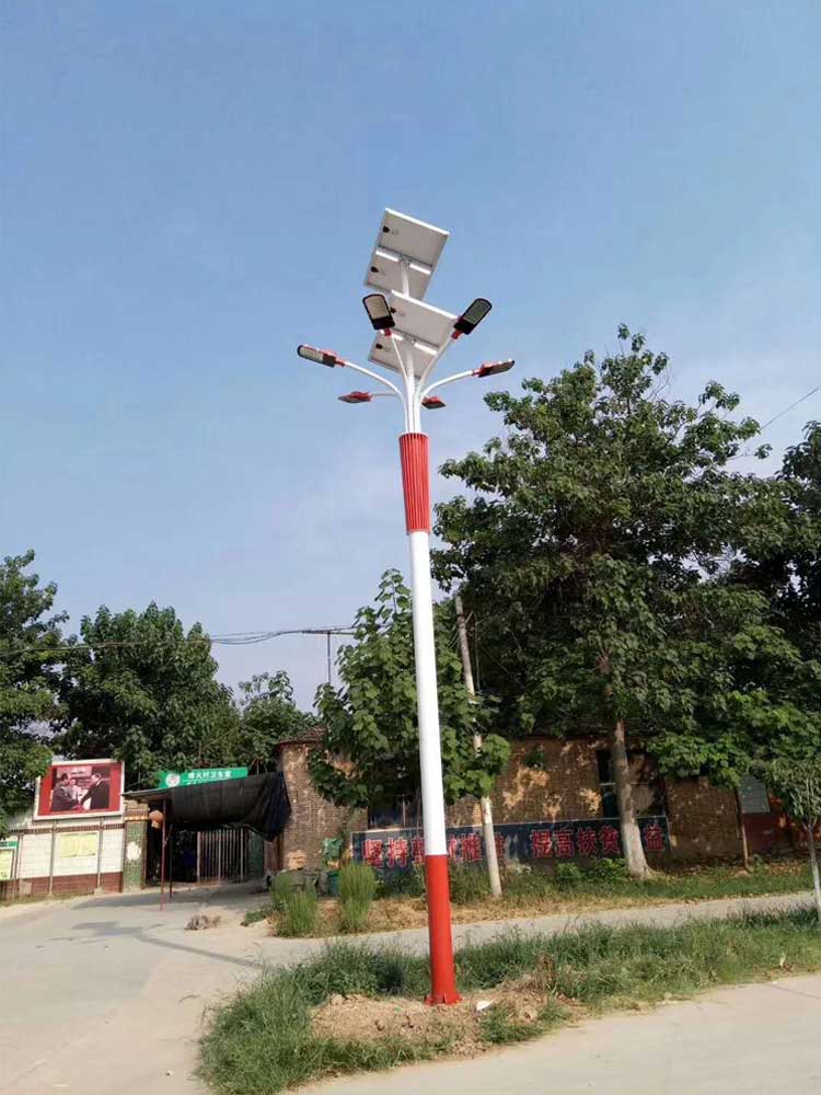 我蘭光照明自主設計生產新農村太陽能路燈——激情烽火,這款燈型是由我公司茍文龍設計師設計的燈型,禮泉縣烽火鎮烽火村,地處關中腹地,是陜西一個有名的模范村,在農村集體經濟發展歷程中,烽火農民用勤勞的雙手寫下了艱苦創業的壯麗華章,也因此成為了上世紀五六十年代聞名全國的“模范村”。七十年代在繼續堅持科學種田和社辦企業并舉的發展思路指導下,集體經濟長足發展壯大,在全國率先建成了社會主義新農村。改革開放之初實行包產到戶和集體經濟并存的發展模式,實現了小康村的目標。烽火村的發展多次受到了黨和國家乃至國際友人的肯定。我們結合了烽火村紅色旅游的特,設計以大紅色為主,支臂采用祥云造型,整體效果美觀莊重。